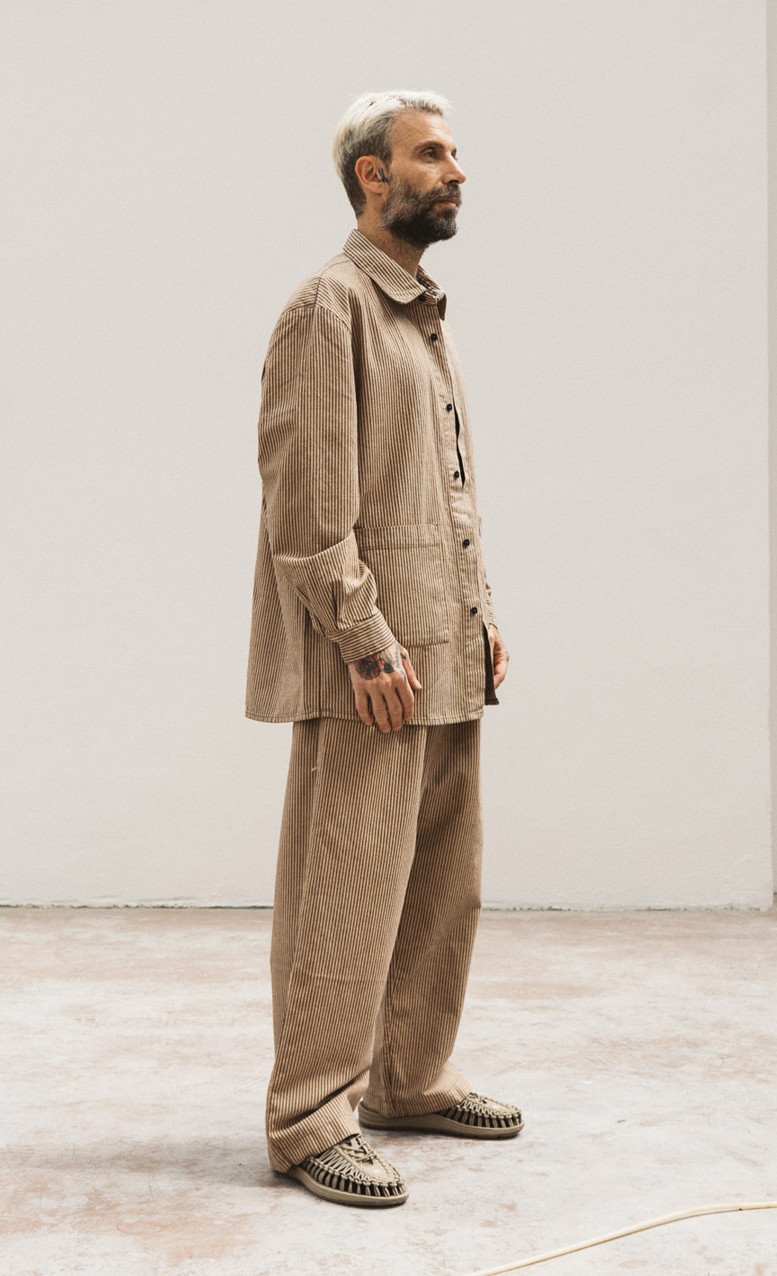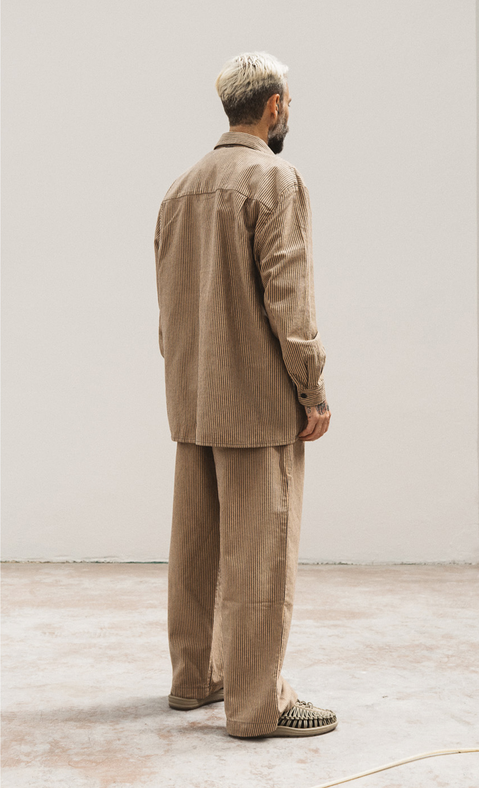 Pantaloni con elastico in vita e fondo ampio.