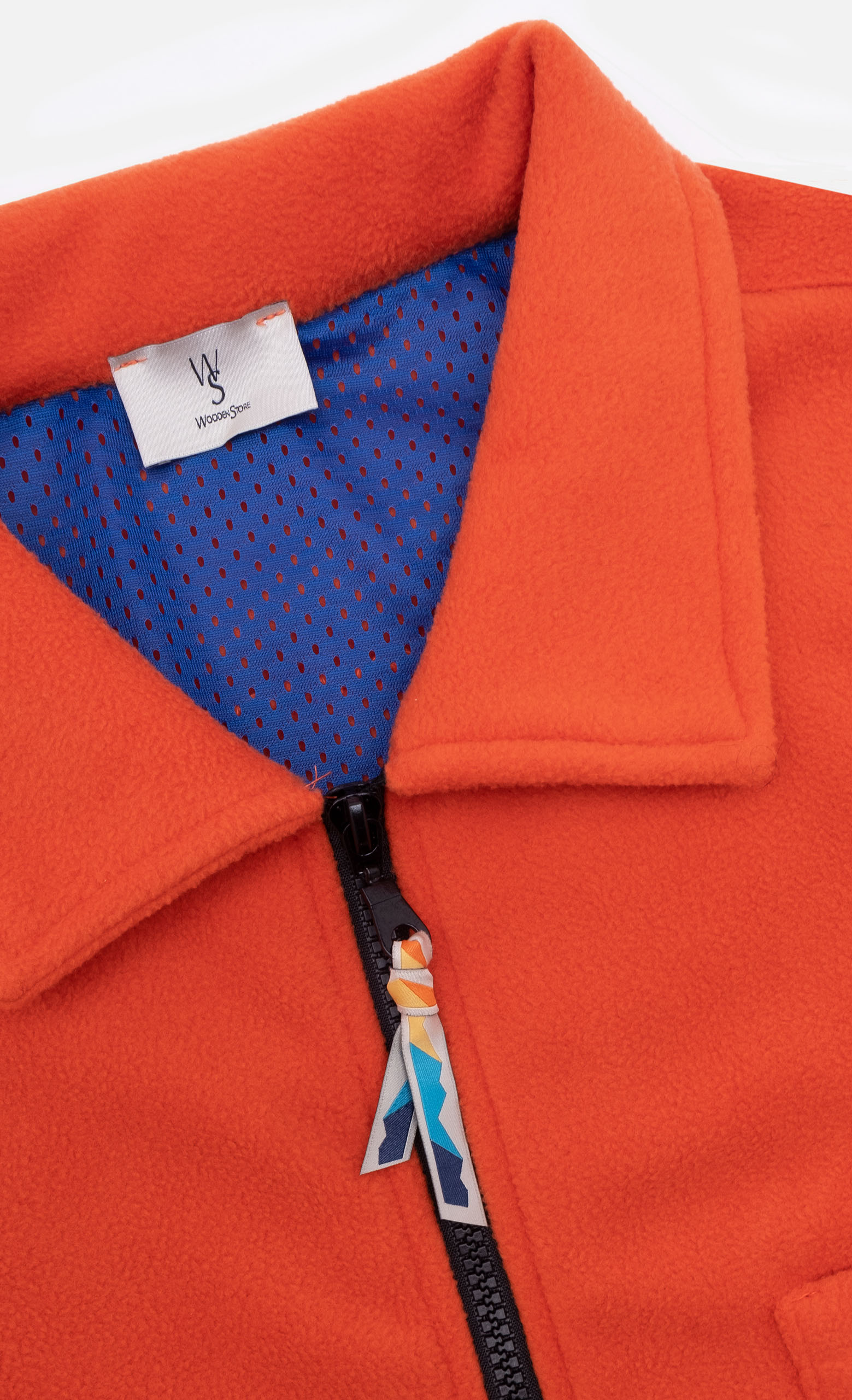 Giacca camicia utility in pile con con chiusura frontale con cerniera e tirantino.