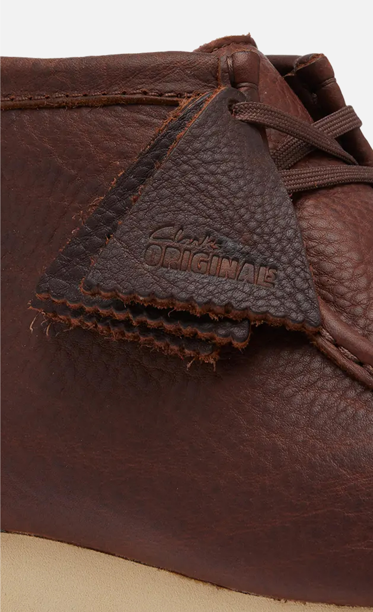 - Rifinita con due targhette in pelle scamosciata con logo (Clarks Originals e Wallabee)