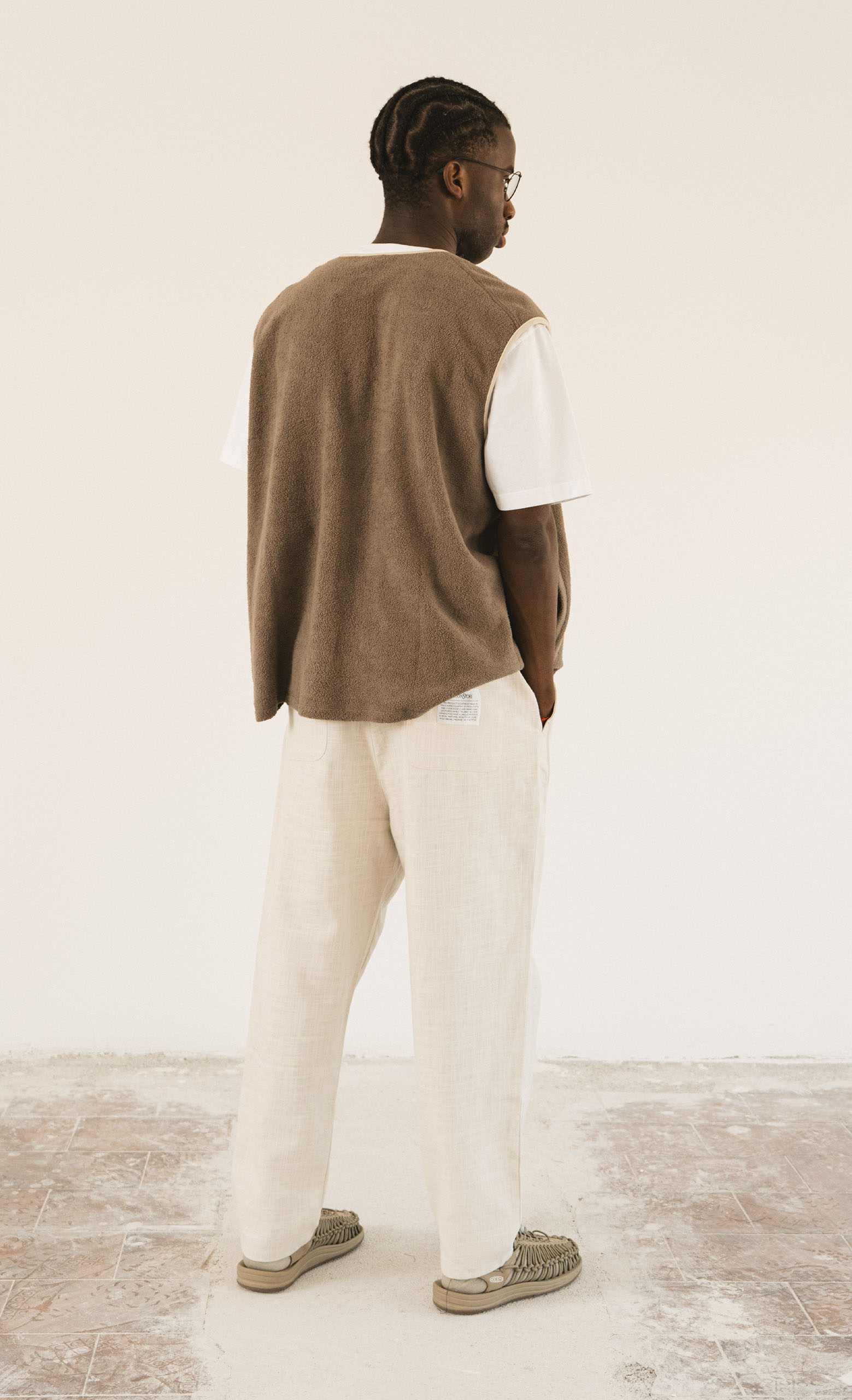 Pantaloni con vita elasticizzata regolabile con coulisse.