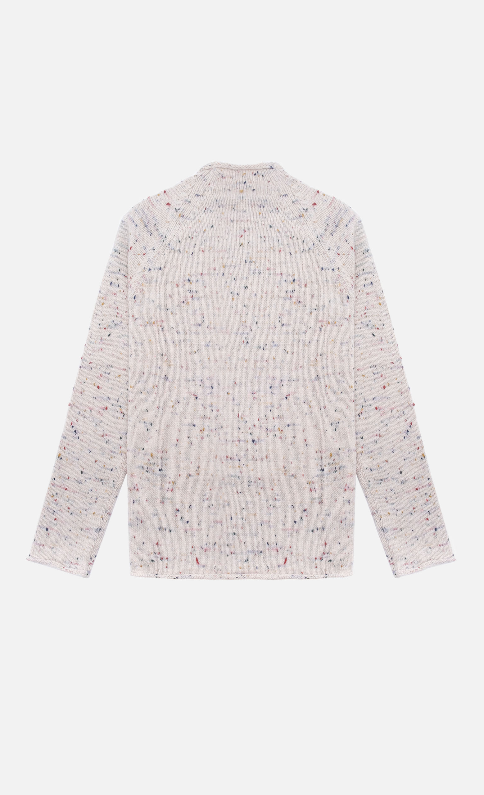 Collo alto e maniche lunghe. Finiture taglio vivo.