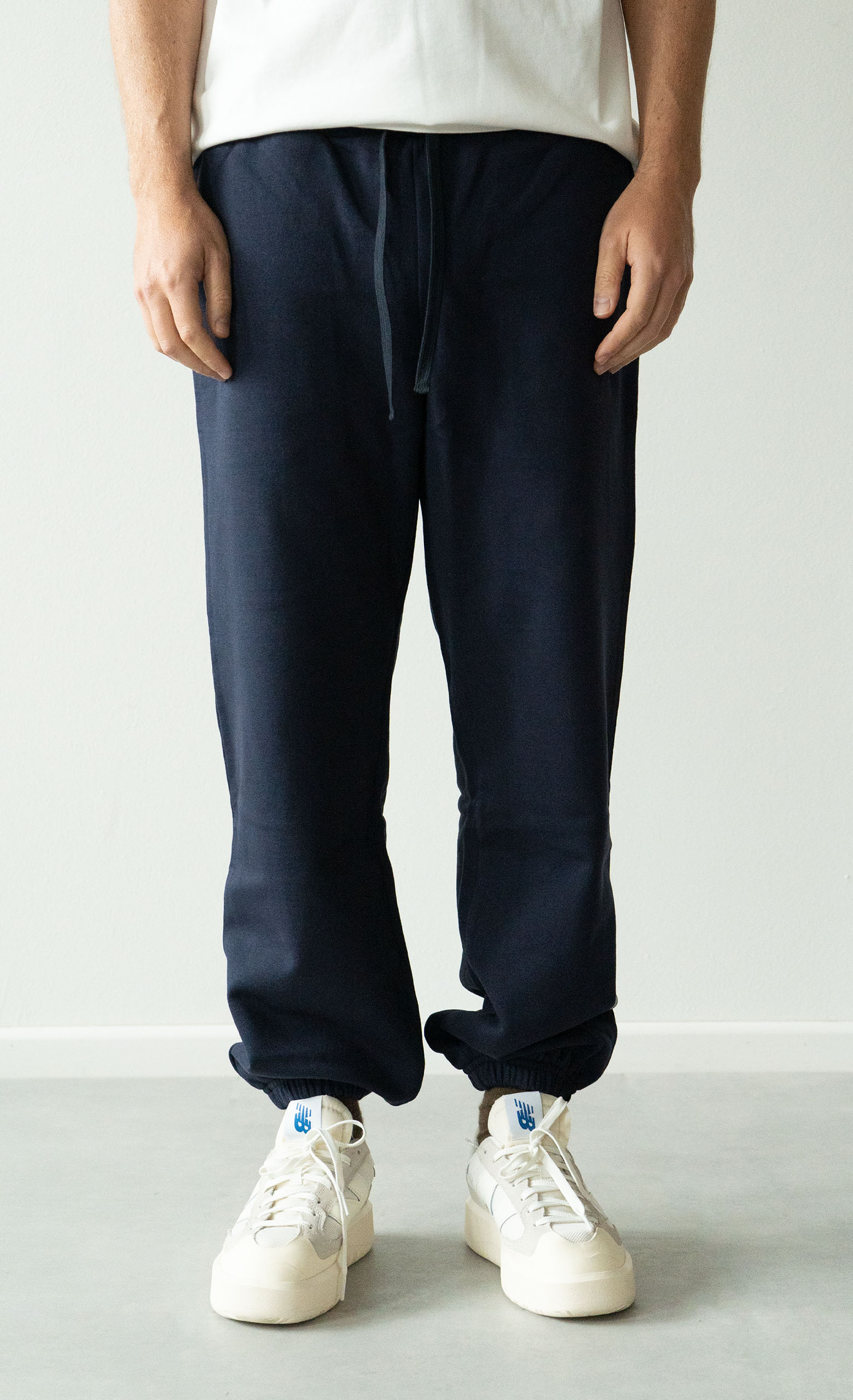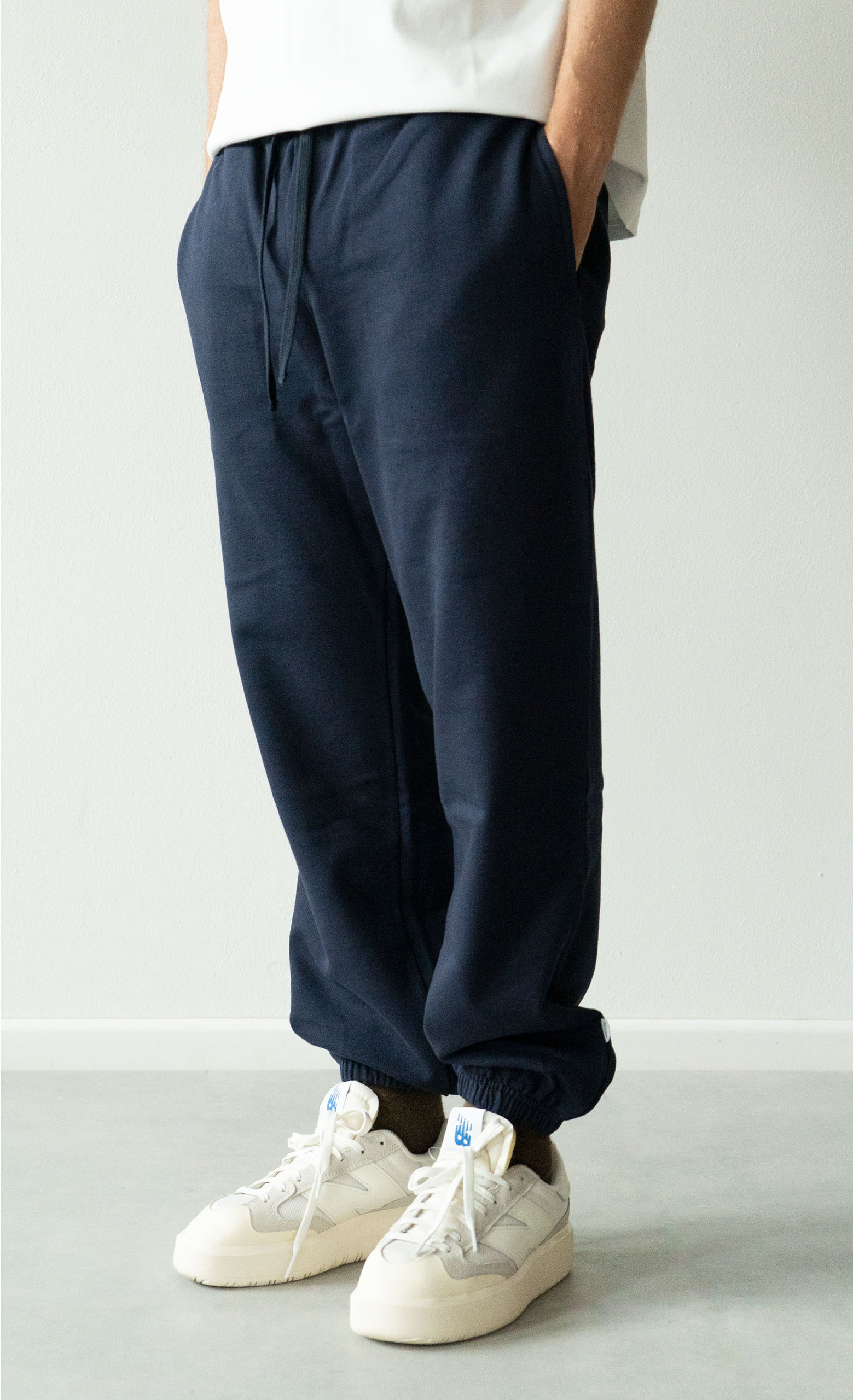 Pantalone in felpa con tasche laterali e polsini sul fondo.