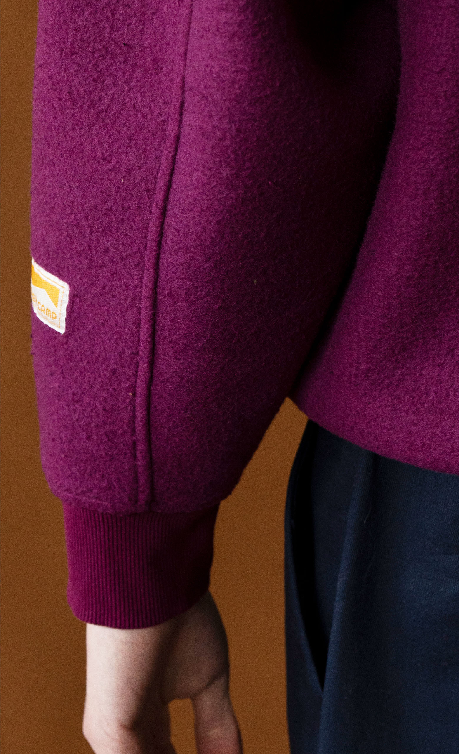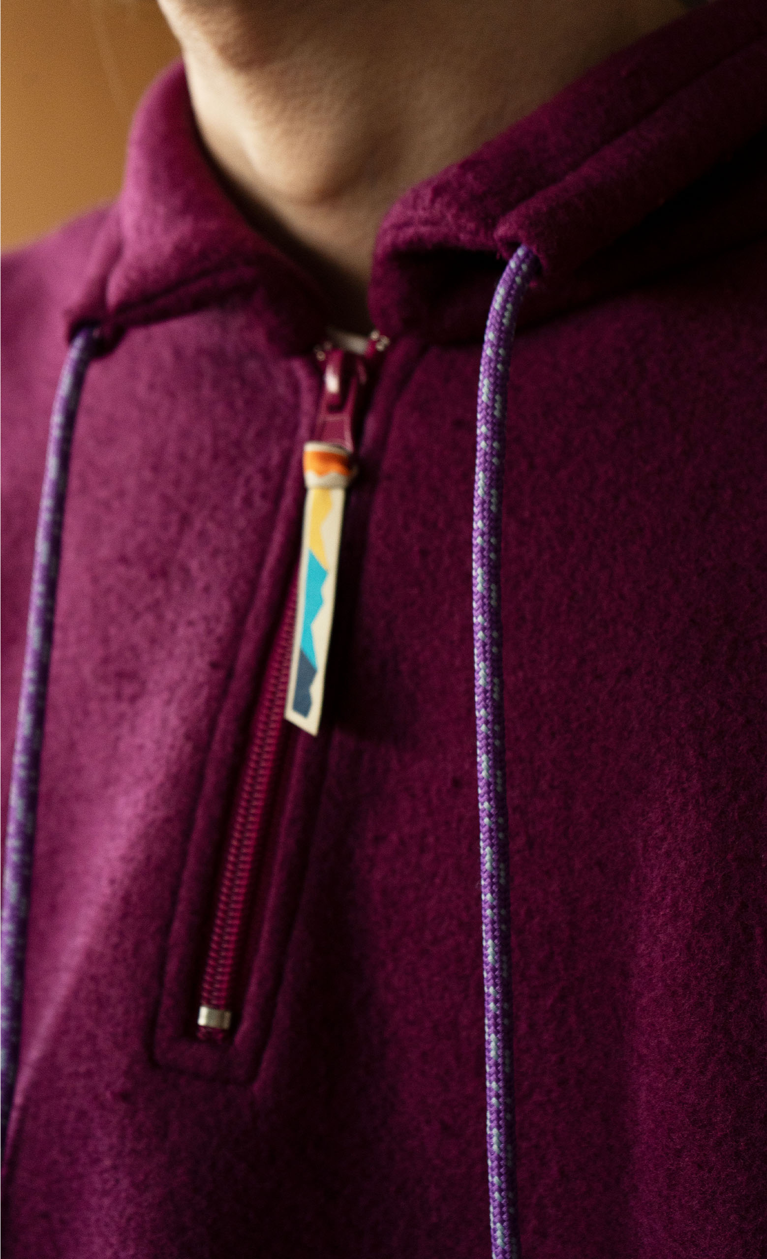 Morbido pile dotato di polsini e fondo elastici, zip sul petto e cordini a contrasto sul collo.